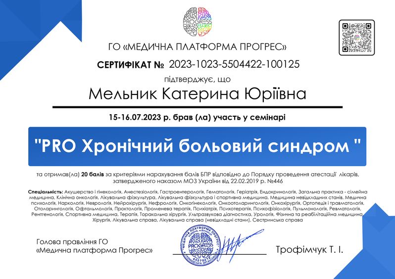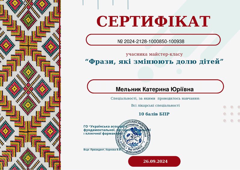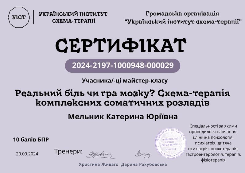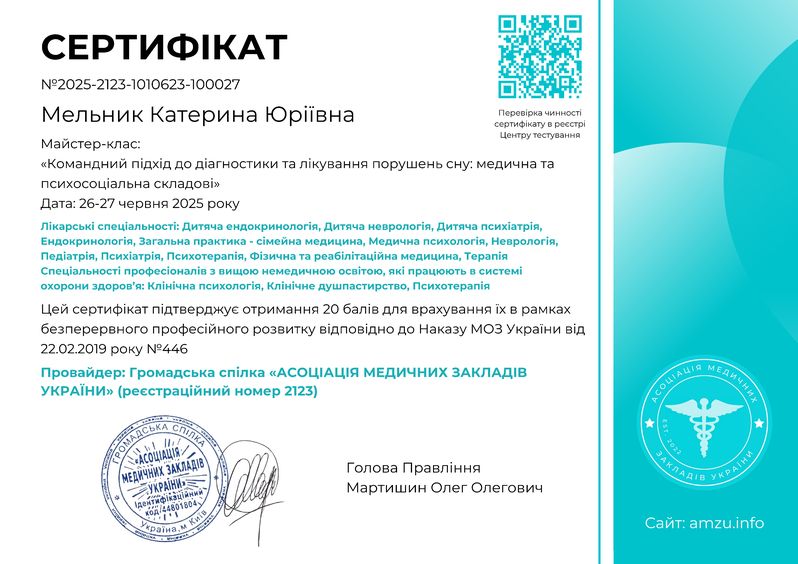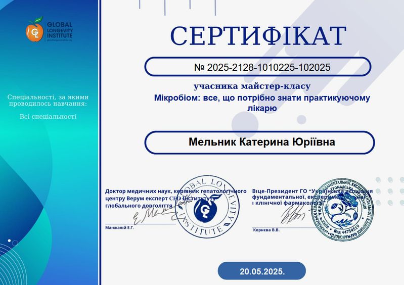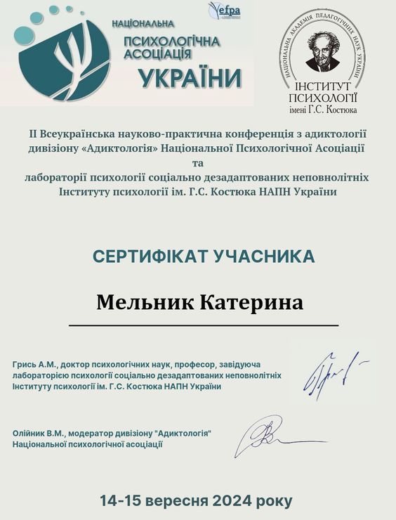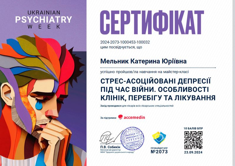 - Психотерапія, спеціаліст (ХНМУ, 2025).